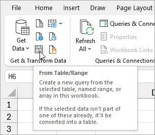 - Open the Data tab and click the From Table/Range option on the Get & Transform Data group.