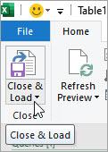 The above step closes the Power Query Editor and loads the dataset without null values onto the destination worksheet.